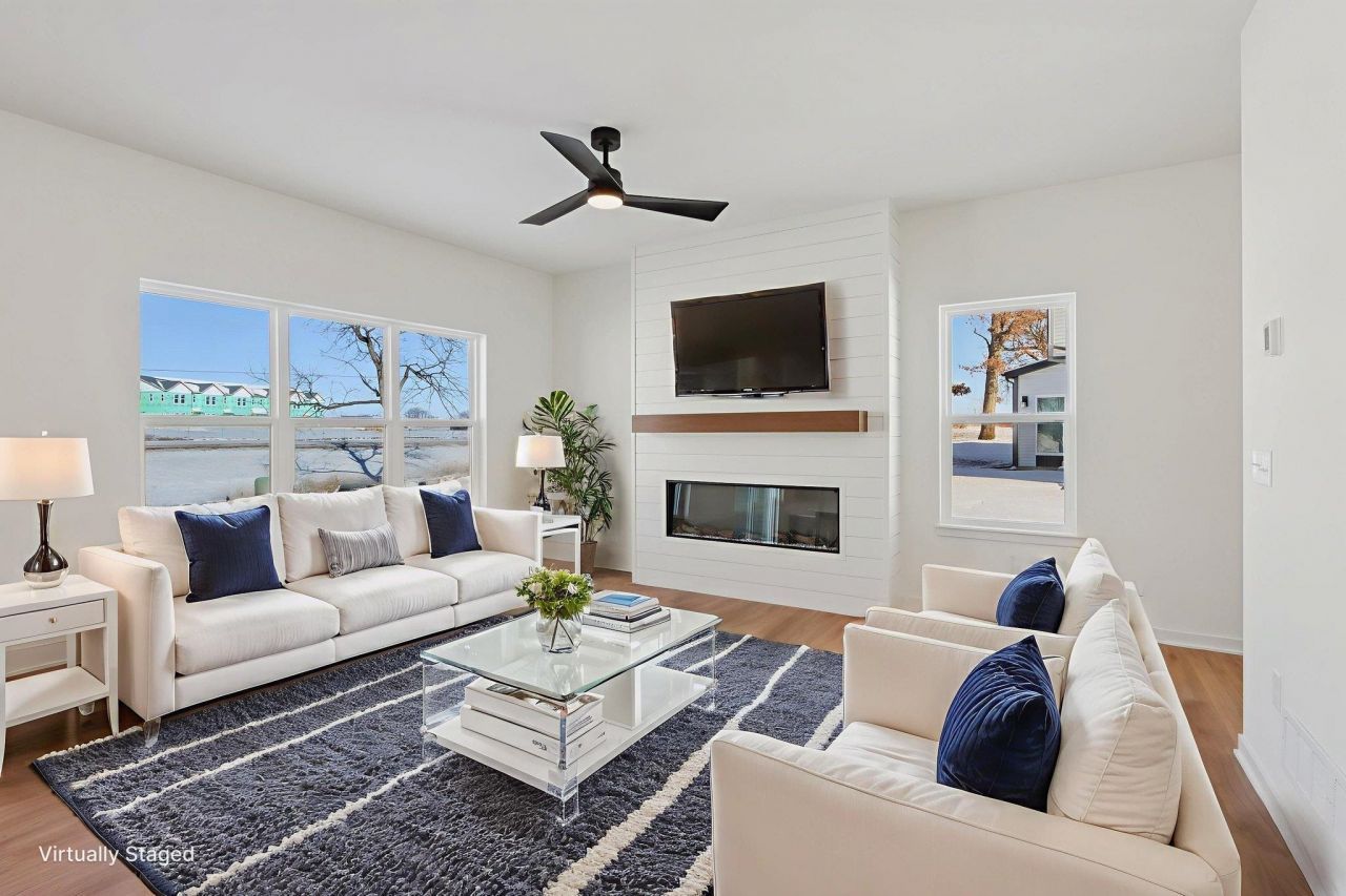 Welcome home to this stunning twin home offering comfort, style, and functionality. A bright and airy great room is the heart of the home, with abundant natural light and a cozy fireplace ideal for relaxing evenings. The sunny kitchen is a dream perfect for entertaining, complete with quartz countertops, an extra-large island, ample cabinetry, and a large pantry. Outside, enjoy the covered patio overlooking a large backyard perfect for outdoor dining, play, or pets, with fencing allowed in the neighborhood. The main level also includes a convenient powder bath, a rear foyer with easy access to the 2-car garage, and plenty of storage. Upstairs, the spacious primary suite impresses with elegant box tray ceilings, a large walk-in closet, and a private en-suite bath. Two additional bedrooms, a full hall bath, and a second-floor laundry room complete the upper level, making everyday living effortless. This energy-efficient home checks all the boxes, Don't miss your chance to make it yours!