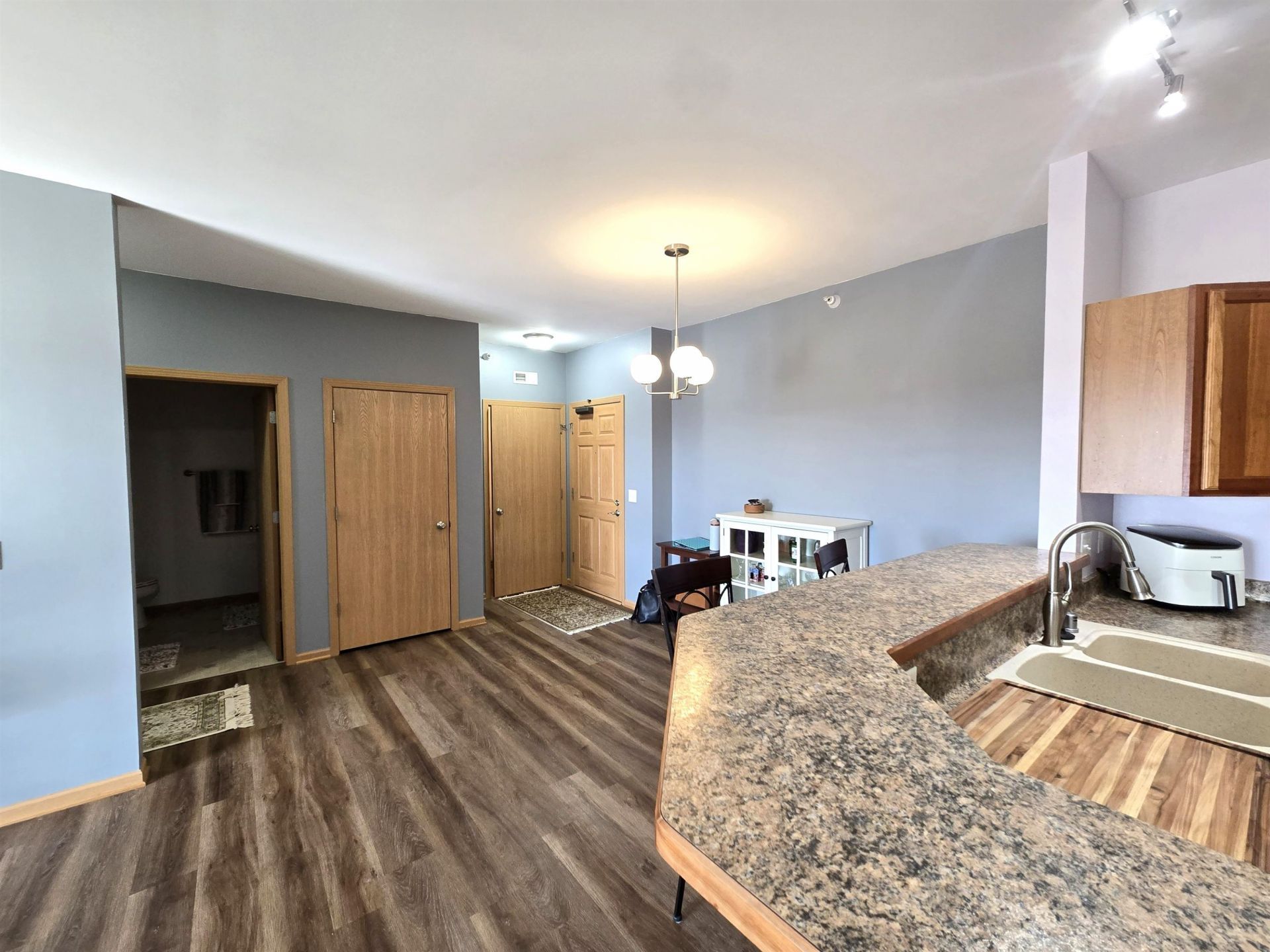 Start enjoying easy Madison living in this bright, welcoming condo with views overlooking the countryside and retention pond. The open layout features high quality LVP flooring that flows throughout, creating a fresh modern feel from the living room to the kitchen, where there's plenty of space to cook and gather. You'll enjoy the open floor plan with private split bedrooms. Primary bathroom with walk-in shower and walk-in closet. In-unit full size laundry makes everyday chores effortless. newer microwave, flooring and light fixtures. Well maintained and truly move-in ready, this home pairs comfort with convenience. Storage locker included. Parking fee is included in the monthly condo fee. Parking stall is #44.