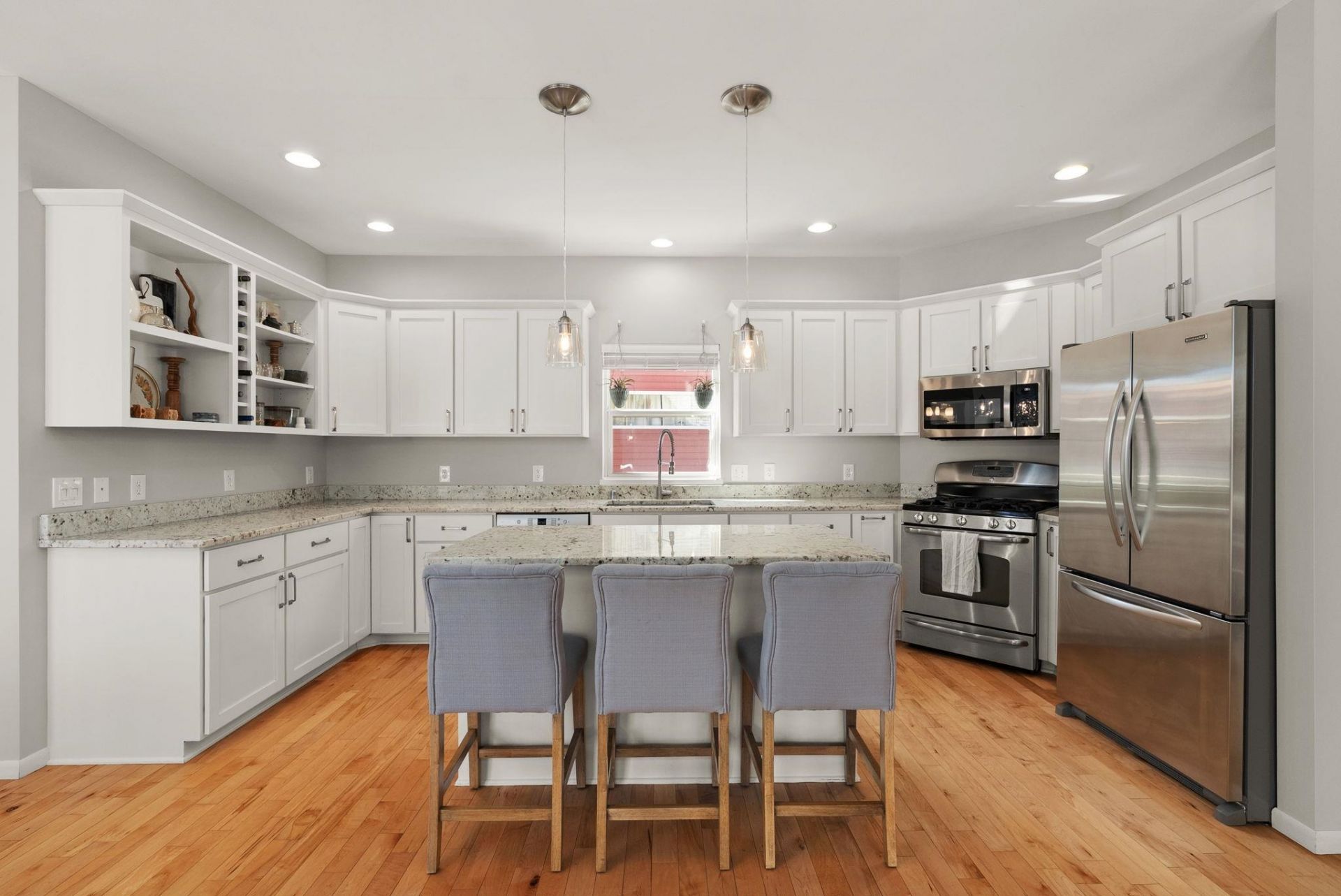 Beautifully cared-for westside 3-bedroom, 3.5-bath home ready for its next chapter! Bright, open main level features a stylish kitchen with large island, granite tops, stainless appliances, and light cabinetry, flowing into a welcoming living area with a gas brick surround fireplace and soaring ceilings. Main-floor primary suite offers a refreshed full bath and walk-in closet.Warm maple flooring and clean-lined white trim carry throughout the home. Upstairs includes two spacious bedrooms and a versatile loft overlooking the main living space-ideal for a home office or hangout zone. The finished lower level provides excellent additional living space with multiple gathering areas, a den,and an updated full bath, with egress windows offering the potential for a future fourth bedroom. Step outside to a newly updated back deck and inviting front porch, all backing to open green space for kids to play!Fresh paint in select areas and a prime westside location close to all Madison has to offer
