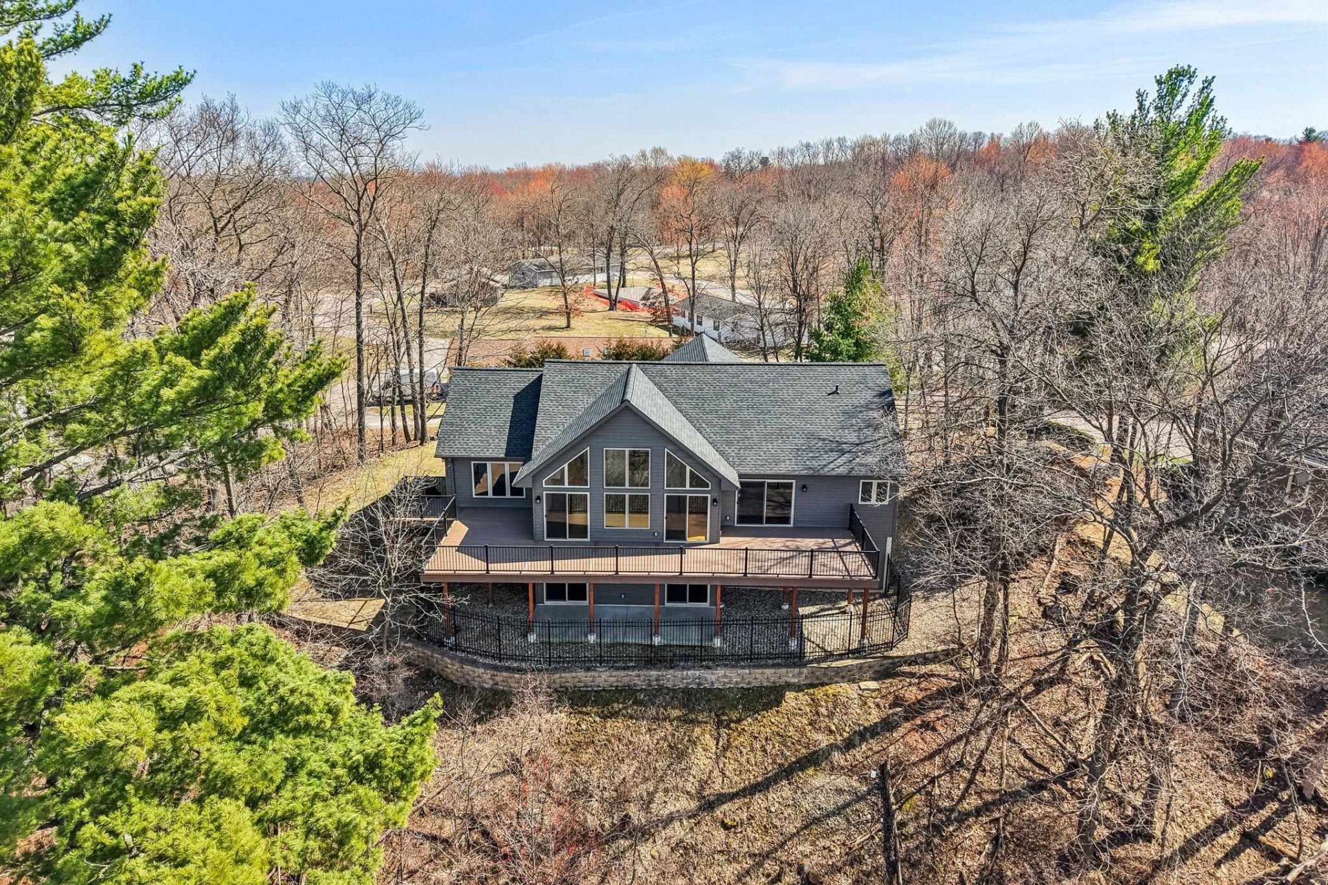 Experience the literal definition of "Million-Dollar View" from this impeccably maintained executive estate, where the expansive deck offers the perfect vantage point to bathe in golden sunlight while watching the sunset over the Wisconsin River, Lake Delton, and the majestic Sauk County countryside. Inside, a floor-to-ceiling "wall of glass" ensures year-round immersion in these breathtaking vistas, while a superb floor plan creates an effortless flow from the grand foyer into the living room, private study, and five spacious bedrooms. Every detail reflects quality, featuring high-end hardwood floors, granite counter top, a gourmet kitchen with premium appliances, exquisite cabinetry, and two cozy fireplaces. Transitioning seamlessly to the lower-level family room and outdoor patio, this home represents the pinnacle of maintenance-free living; significant 2025 upgrades include the designer deck, new seamless steel siding, and a professionally installed roof with modern skylights.
