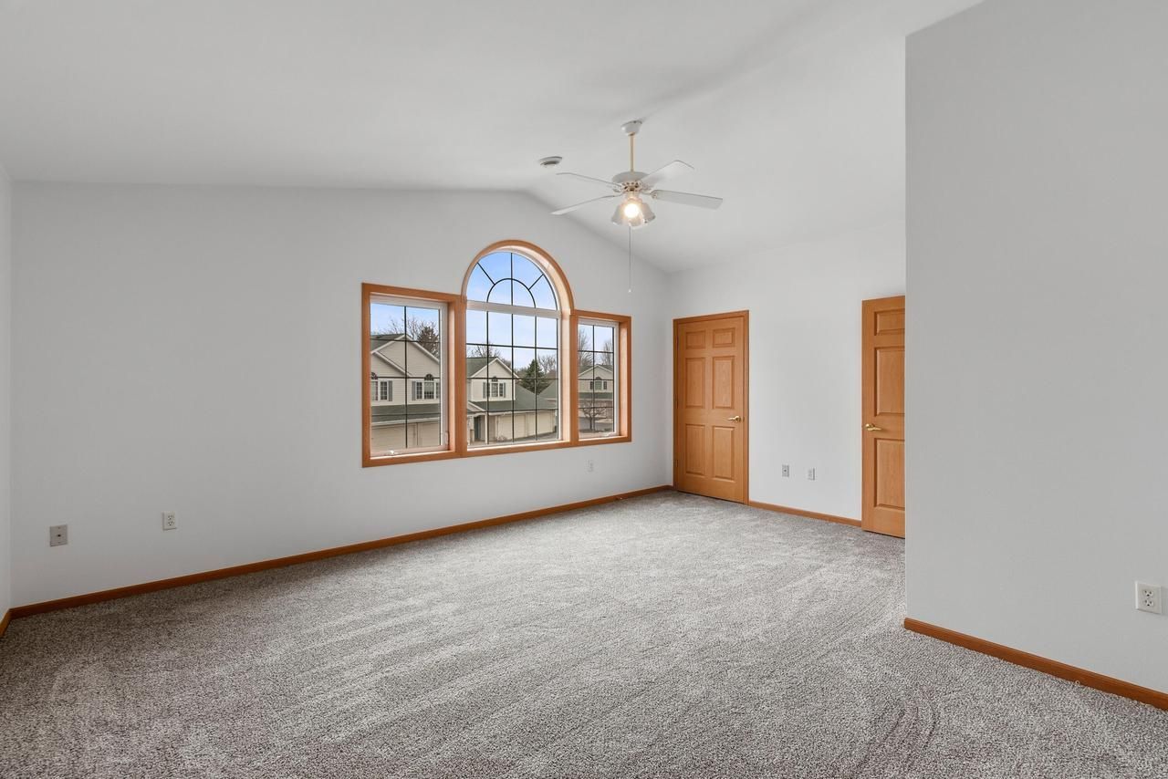 Clean & fresh 3-bedroom, 2 full bathroom condo w/wooded views & low fees $225! Enjoy carefree living in this freshly-painted, newly-carpeted upper condo. Featuring open-concept living, soaring cathedral ceilings, abundant closets, & a private entry. Highlights include a 2-way gas fireplace connecting the living room to the primary en-suite, & patio doors leading to a private balcony overlooking a serene wooded nature area. Featuring a massive 3rd bedroom, which could be perfect for a home office or rec room, plus an attached private 2-car garage. Includes all appliances & a convenient 2nd-floor private laundry. $225/month fee covers no-hassle snow/grass maintenance. Prime location near Hwy 33 w/convenient access to Hwy 41 or Hwy 45, shopping, parks, and dining. Pet allowed (see docs).