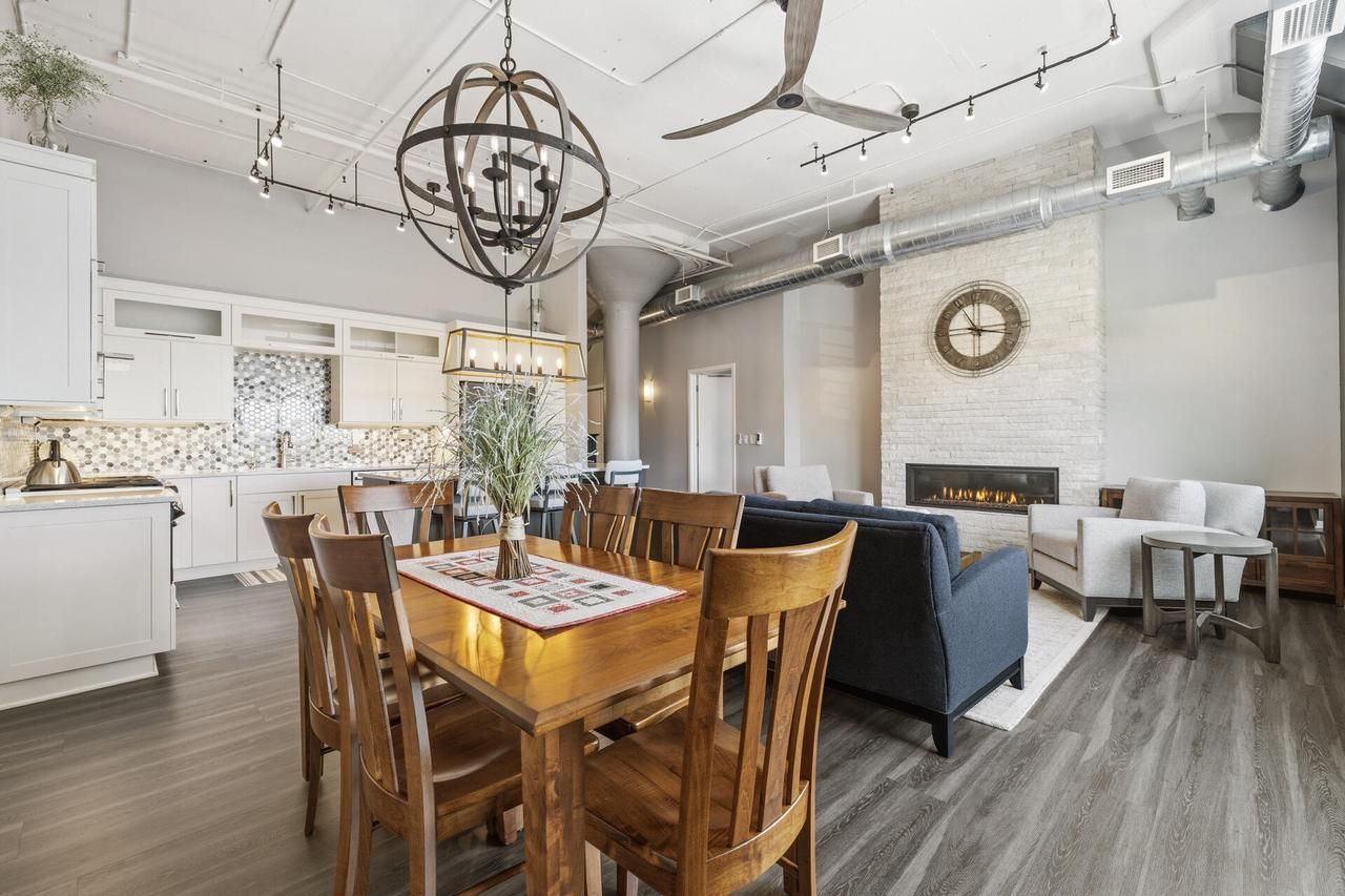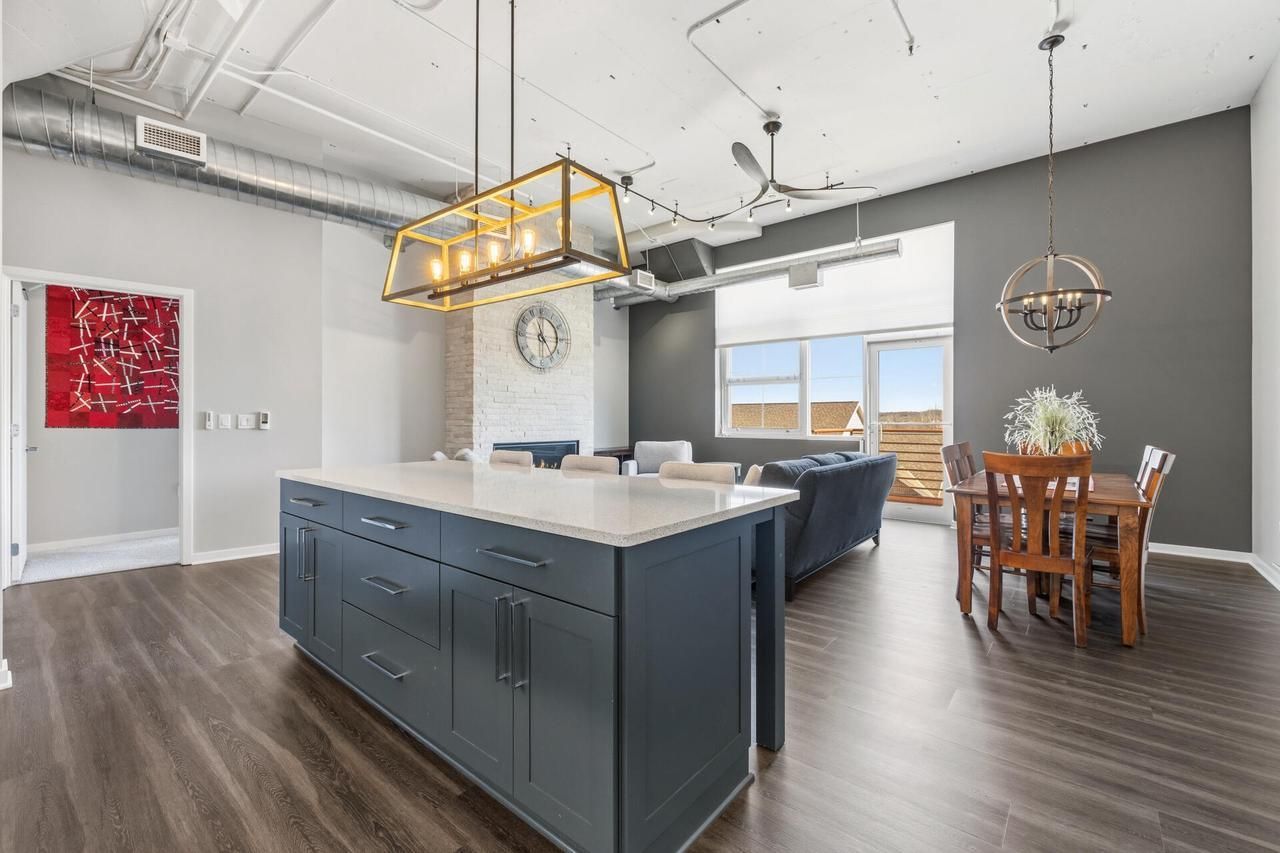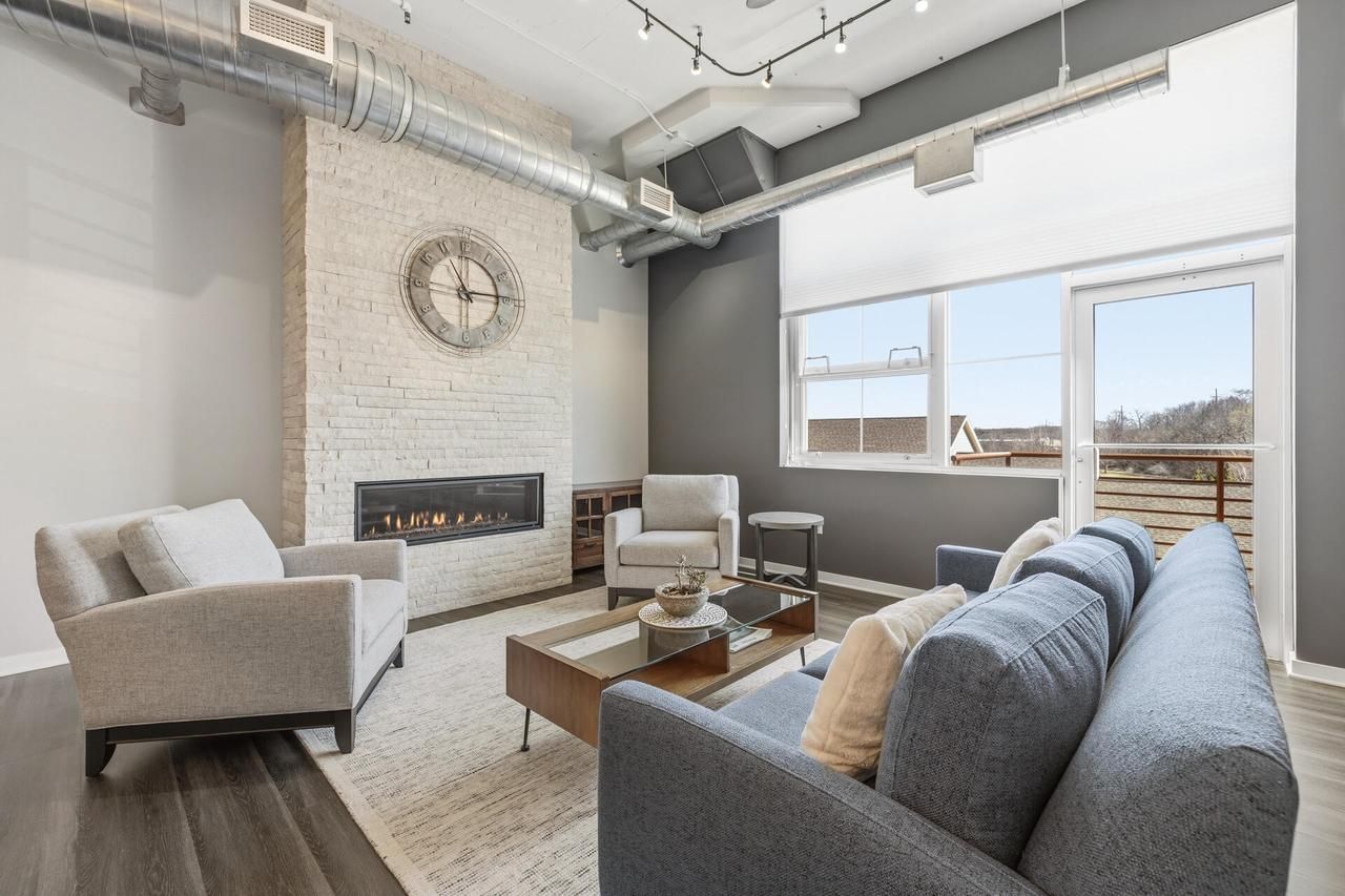 Rare warehouse-style condo within walking distance to downtown West Bend and backing up to the Eisenbahn State Trail. Open-concept layout with soaring 12-foot ceilings, LVP cork-backed flooring, quartz countertops, and Thermador stove. Floor-to-ceiling stone gas fireplace adds character to the living space. Balcony offers peaceful views of the Eisenbahn Trail. Enjoy walkability to dining, shopping, and entertainment including the The Bend Theater. Heated underground parking and YMCA in the building with discounted membership. Condo dues include cable, internet, and water.