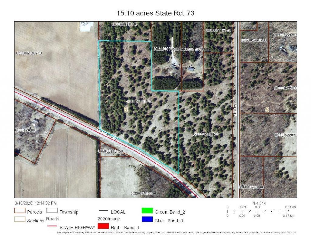 This 15.1-acre slice of Waushara County is just north of Wautoma. Dense white pines provide for excellent bedding habitat for deer, turkey and other wildlife that traverse the property on a regular basis. Some hardwoods and rolling.